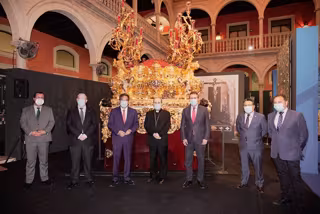 Este lunes, en un acto institucional con aforo limitado, la Fundacion Cajasol inauguraba esta muestra con la presencia del presidente de la entidad, Antonio Pulido; el arzobispo de Sevilla, Juan José Asenjo; el alcalde de la ciudad, Juan Espadas; el delegado de la Junta en Sevilla, Ricardo Sánchez; el presidente del Consejo de Hermandades, Francisco Vélez; y el hermano mayor de la Hermandad de Nervión, José Cataluña.