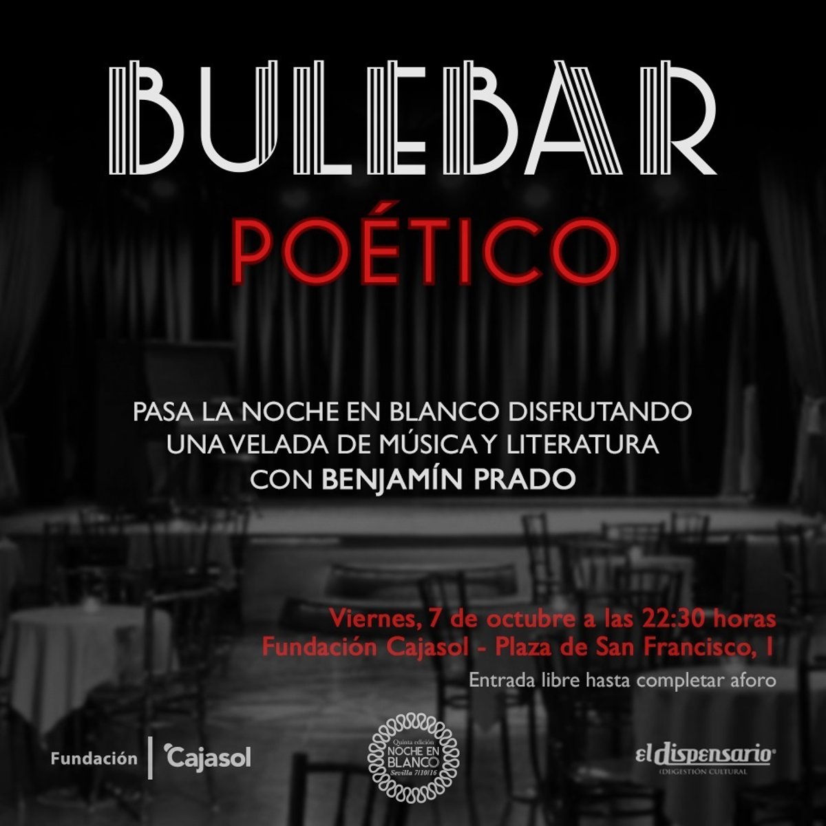 A partir de las 22,30 horas, se podrá disfrutar de esta velada de música y literatura de la mano de Benjamín Prado. Además, el público podrá adquirir consumiciones en el Bulebar recreado en el patio.