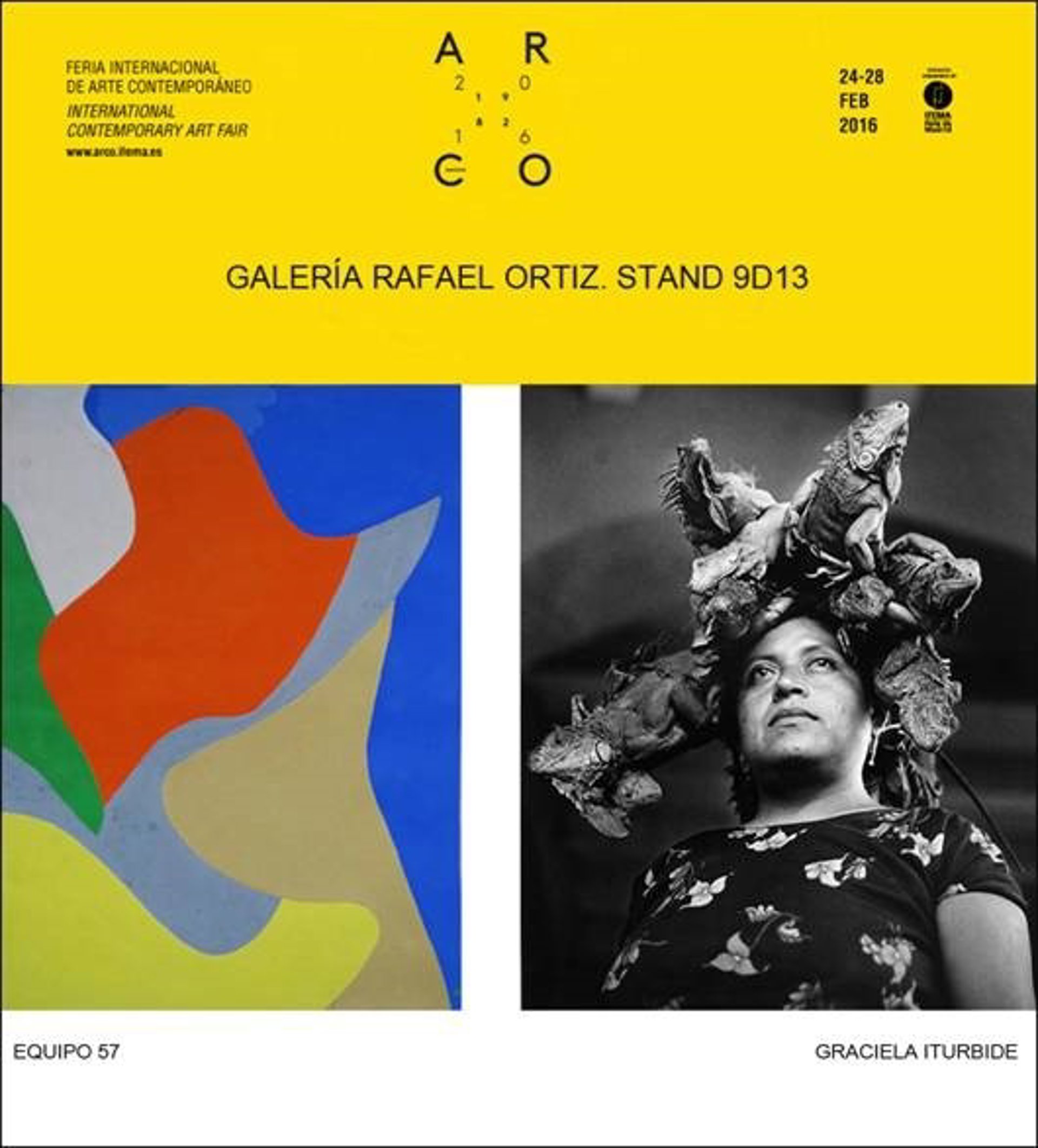 En declaraciones a Europa Press, Rafael Ortiz explica que en la presente edición volverán a participar de nuevo en la propuesta 'Solo/Dúo' --incluida dentro del programa general-- con "dos clásico de la modernidad" como son Equipo 57 y Graciela Iturbide, una mezcla "un poco explosiva", a juicio del galerista, que participa en la feria por trigésimo primera vez y que en 2016 ocupará el stand 9D13.