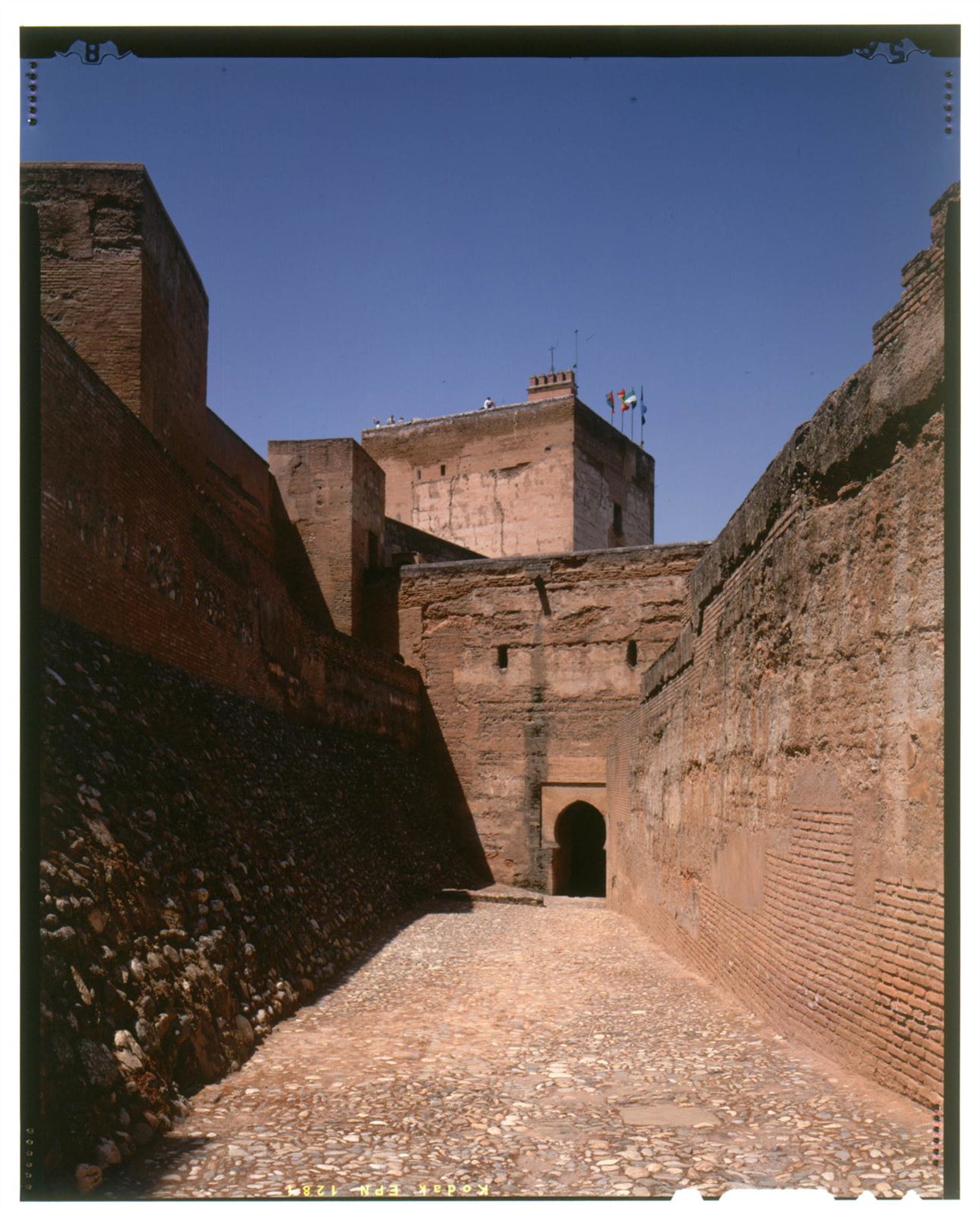 Su ubicación la hace independiente e inexpugnable, especialmente a partir de un punto estratégico como es la Alcazaba, el espacio más antiguo de todo el recinto monumental. Este elemento recorre todo el perímetro junto a la muralla pero no cumplía únicamente una función militar sino que delimitaba las funciones urbanas al ser la calle que, una vez atravesada la Puerta de las Armas, llegaba al interior del recinto de la Alhambra.