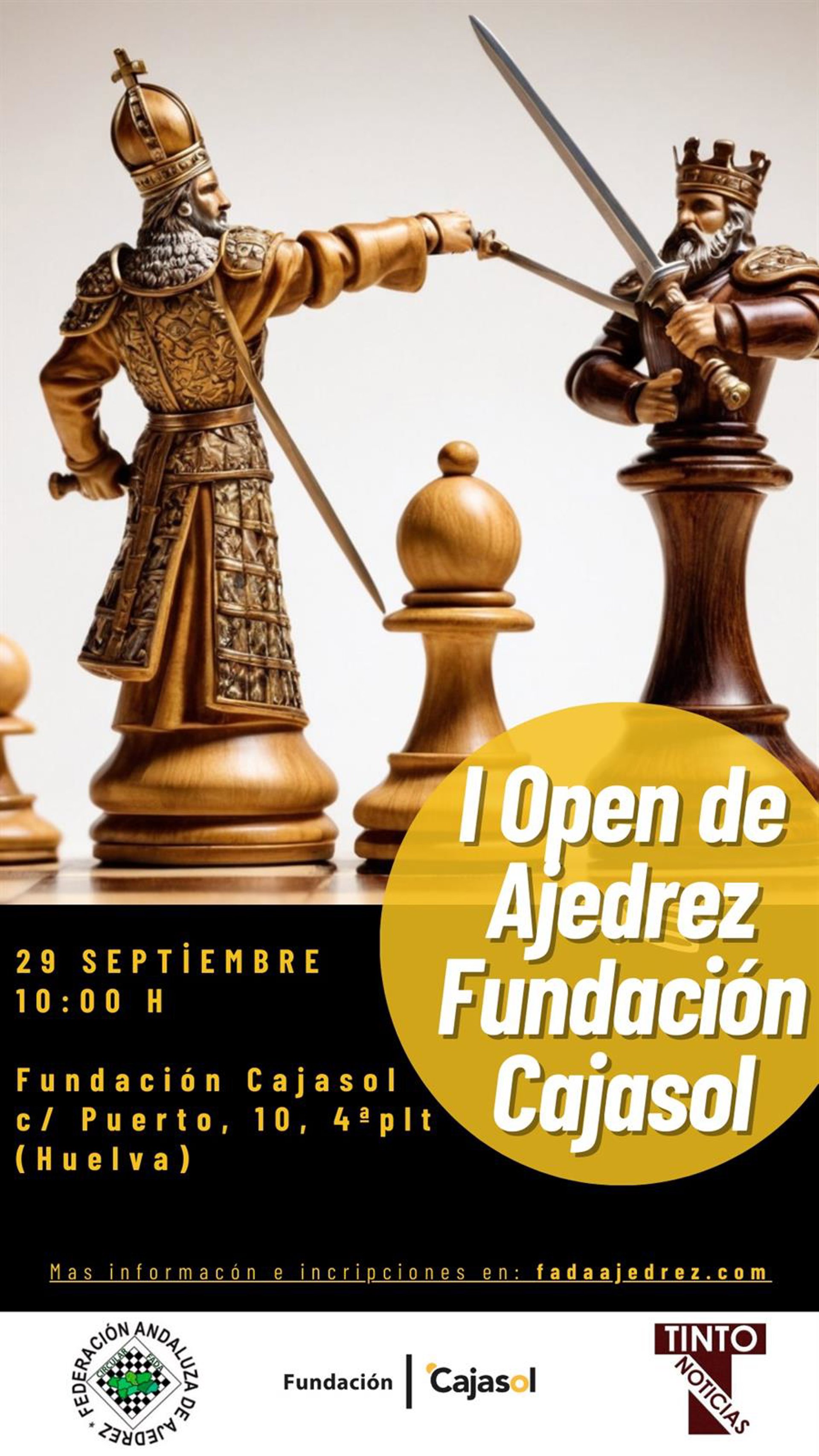 Huelva acoge este domingo el I Open de Ajedrez Fundación Cajasol. El torneo, que se pone en marcha con la colaboración de Tinto Noticias, es valedero para Elo FADA y reunirá a un centenar de participantes