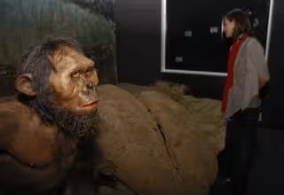 Una escenografía "realista" muestra a un grupo de Australopithecus afarensis, a los que su estructura social, su desconocimiento del fuego y su falta de capacidad para el habla les hace vulnerables, al lado de una familia de Neandertales, que reunidos en una conversación en torno del fuego dejan patente su cohesión social y su seguridad. Además, los visitantes podrán hablar, a través de un simulador, como seguramente lo hacían los Neandertales, con una distorsión de las vocales a, i y u.