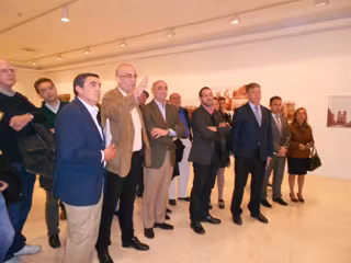 Al acto de inauguración han asistido, el director general de Industrias Creativas y del Libro, David Luque, el delegado territorial de Educación, Cultura y Deporte, Vicente Zarza, el alcalde de Palos de la Frontera, Carmelo Romero, y el director de Relaciones Institucionales de Cepsa, Jesús Velasco.