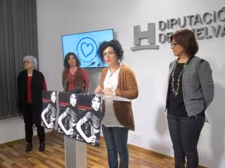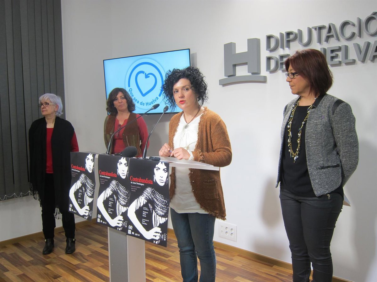 En rueda de prensa, la diputada territorial del Área Metropolitana, María Eugenia Limón, junto a la concejala de Bienestar Social del Ayuntamiento de Punta Umbría, Aurora Aguedo; la actriz principal de la obra de teatro 'Contrabandista', Rosa González, y la directora de la misma, María García, presentaron este obra que se enmarca dentro de la programación que el Consistorio ha preparado con motivo del Día Internacional de la Mujer.