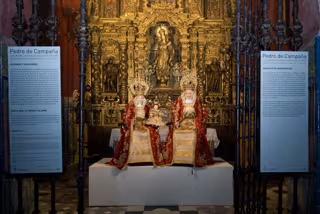 Las quince pinturas que integran el retablo, obra renacentista de Pedro de Campaña, y otras seis esculturas de las entrecalles laterales están expuestas en el Museo de Bellas Artes de Sevilla, hasta el 17 de octubre.