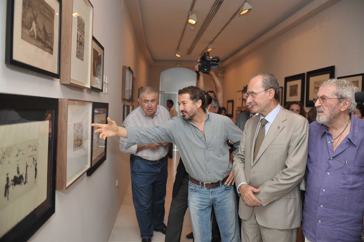 El alcalde, Francisco de la Torre; la artista José María Cano, el delegado municipal de Cultura, Miguel Briones; y la directora de la Fundación Picasso, Lourdes Moreno, y el coleccionista Antonio de Suñer inauguraron la muestra que consta de 129 obras, de las que 29 pertenecen al pintor malagueño; 40 a Goya y 60 a Cano.