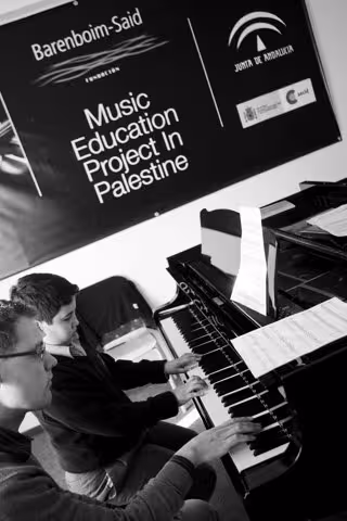 Este taller para jóvenes músicos palestinos está inspirado en los encuentros que la conocida Orquesta West-Eastern Divan celebra cada verano en Sevilla y tiene como finalidad no sólo el perfeccionamiento musical, sino también el aumento de las actividades artísticas en la zona y la comunicación entre la población palestina de Cisjordania e Israel.