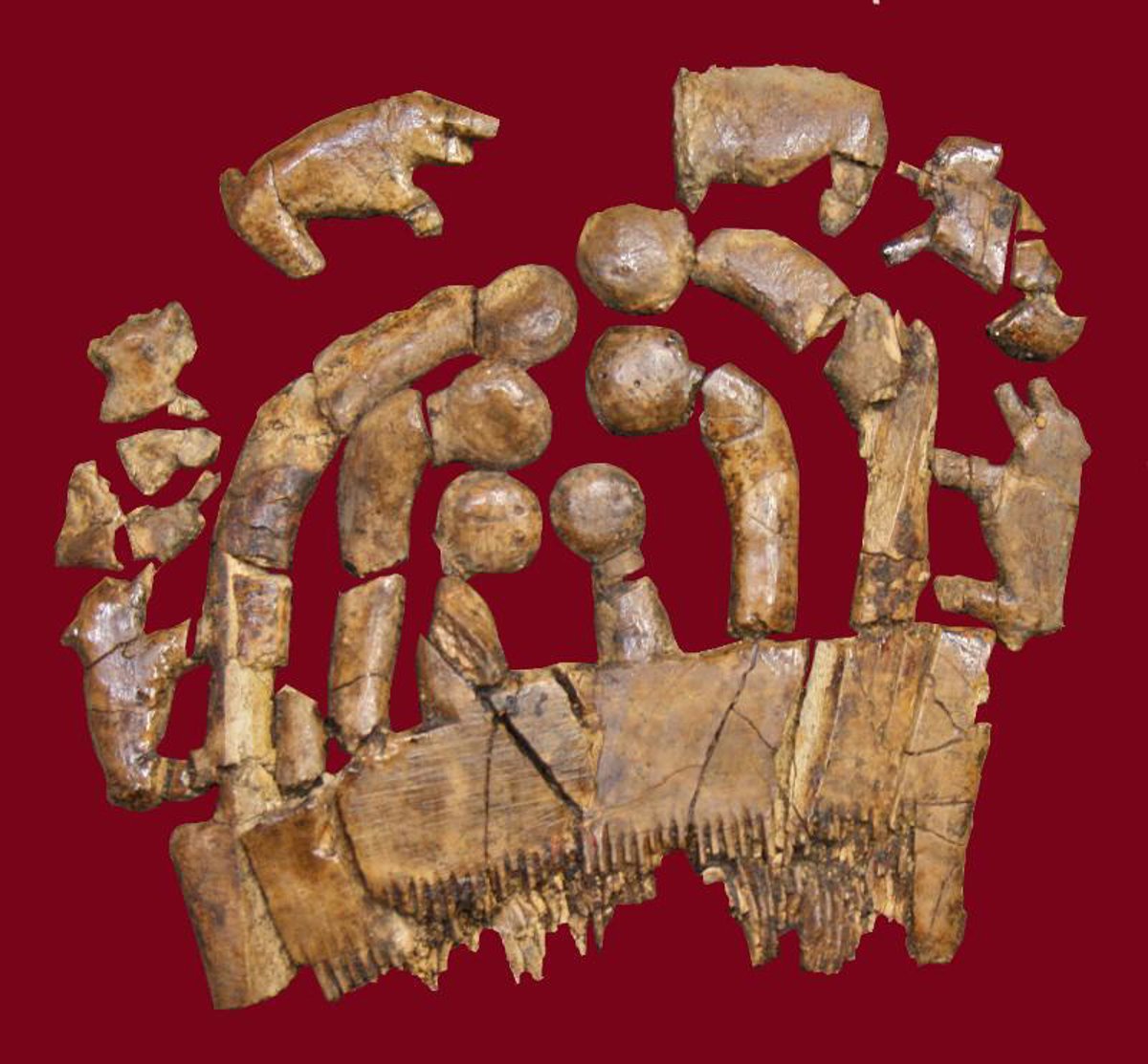Los últimos hallazgos, según informó nuevamente a Europa Press el arqueólogo director de los trabajos, son dos "peines de marfil" ornados con figuras zoomorfas semejantes a pequeños cerdos, unas "composiciones artísticas bastante complejas" que prueban la "riqueza de los ajuares" de la sociedad que construyó el túmulo. Además, los arqueólogos han rescatado de la tierra "un altar o estela con un motivo antropológico" aún por esclarecer, dado que la pieza está siendo sometida a un proceso de restauración.