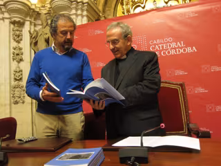 El deán presidente del Cabildo Catedral de Córdoba, Manuel Pérez Moya, y el arquitecto Francisco Javier Vázquez Teja han presentado este miércoles el libro 'Los Santuarios del Cabildo Catedral de Córdoba. Historia y restauración', obra del citado arquitecto en la que aborda la situación de los tres santuarios marianos de Nuestra Señora de Linares, Nuestra Señora de la Fuensanta y Nuestra Señora de la Salud.