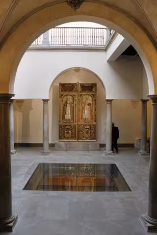 Además, se han integrado en el edificio los restos arqueológicos más significativos para que puedan ser contemplados por el público gracias a pavimentos flotantes transparentes.