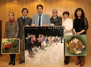 El cuadro premiado lleva por título 'Wainting for Soroya' y está realizado con una técnica mixta sobre tabla. La obra se inspira en las colas de visitantes formadas a las puertas del Museo del Prado para ver la exposición temporal que la pinacoteca madrileña dedicó al pintor valenciano.
