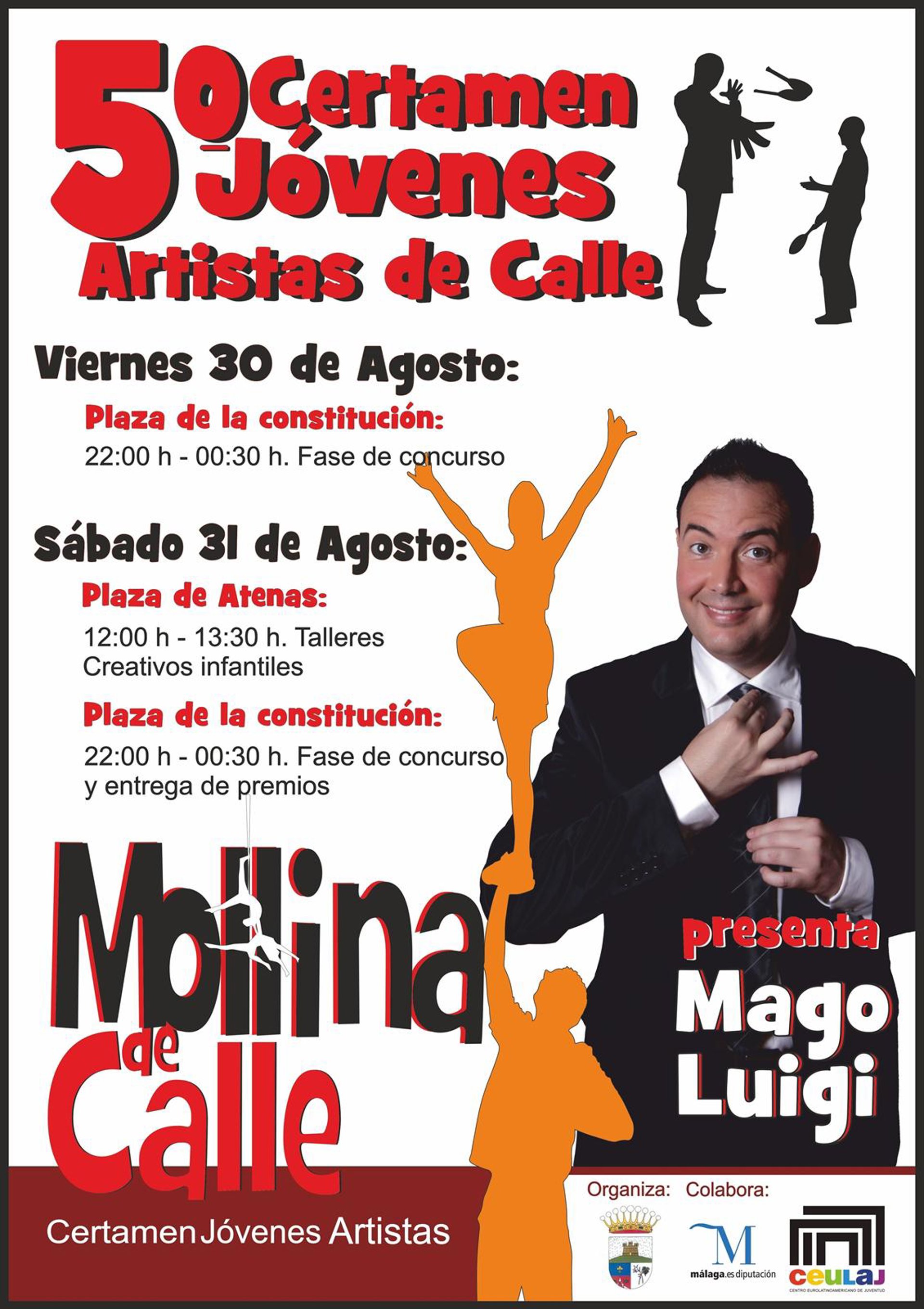 Los días 30 y 31 de agosto tendrá lugar el Certamen Jóvenes Artistas de Calle, que llega ya a su quinta edición, en el que, después de una complicada preselección, habrá 16 aspirantes, según han indicado desde el Ayuntamiento de Mollina.