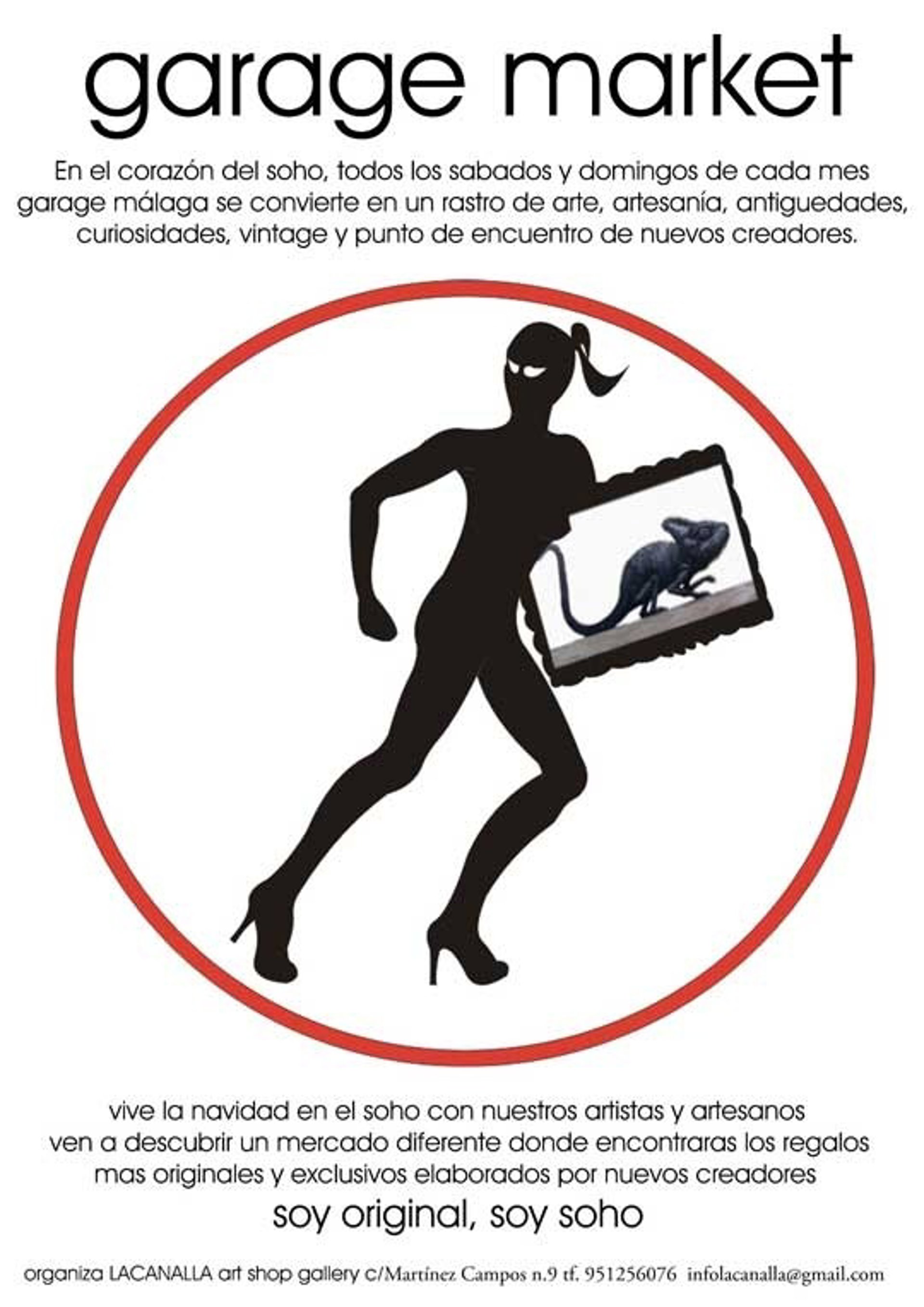 Este nuevo concepto de exposición de arte, dentro de un garaje antiguo, se celebró por primera vez y con bastante éxito durante la pasada Noche en Blanco de Málaga. Un espacio de 1.000 metros cuadrados, cuyas características arquitectónicas permiten crear un mercado alternativo de estilo londinense.
