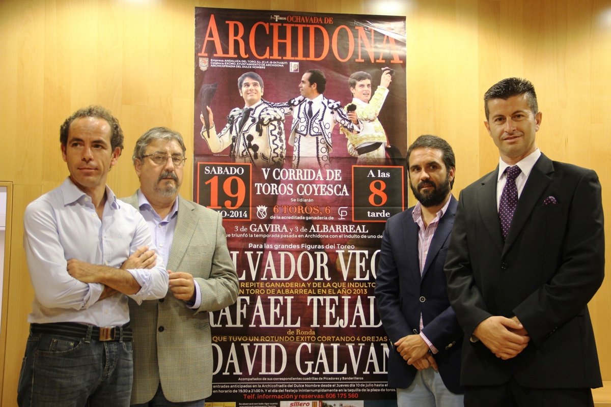 El esteponero Salvador Vega, el rondeño Rafael Tejada y el gaditano de San Fernando David Galván componen el cartel de la quinta edición de la corrida de toros Goyesca de Archidona (Málaga), que se celebrará este sábado 19 de julio a partir de las 20.00 horas en la monumental plaza Ochavada del municipio. Este espacio se ha acondicionado para albergar a un millar de espectadores.