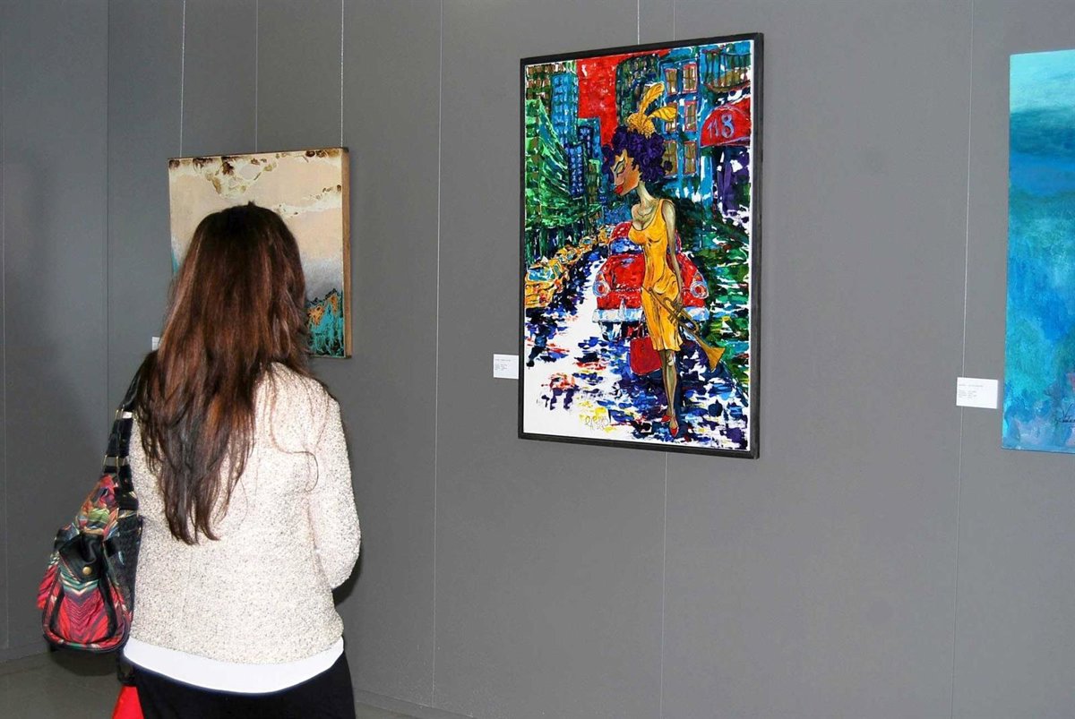La muestra acoge 35 cuadros, de arte figurativo, abstracto e hiperrealismo, y entre los cuadros colgados se distingue una obra, en este caso abstracta, realizada con la técnica de cera natural de abeja.