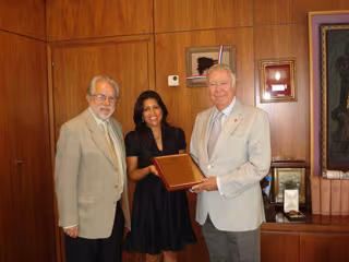 El Museo Bellapart ha querido agradecer a la Fundación Caja Rural del Sur la "difusión internacional de las artes visuales dominicanas a través de la colección Bellapart", ahora que dicha muestra regresa a su tierra tras haber recorrido buena parte de la península ibérica. Y lo ha hecho a través de la directora del Museo, Paula Gómez, quien ha entregado a su presidente, José Luis García Palacios, una placa conmemorativa de la presencia de la colección en nuestro país y en agradecimiento por todas las gestiones y facilidades que la entidad ha procurado para que esta estancia sea posible.