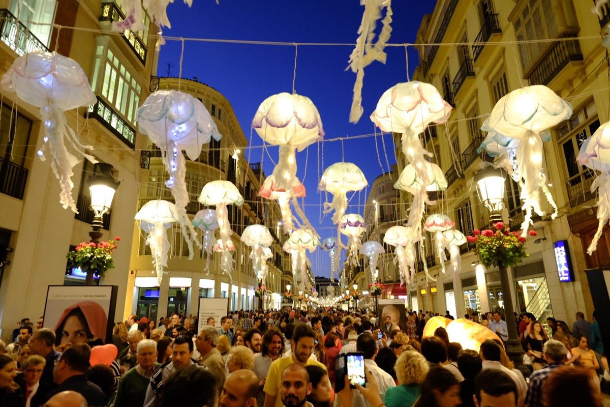 Las acciones urbanas han seguido siendo las grandes protagonistas de La Noche en Blanco y las más seguidas como es el caso de las medusas de calle Larios, que se estima que fueron vistas por al menos 25.000 personas.