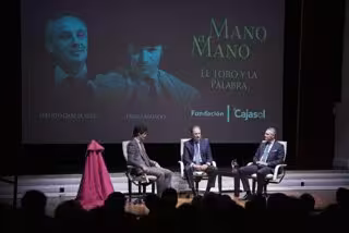 Esta nueva cita proponía la revisión de un tema recurrente: la relación entre el toreo, la literatura y el periodismo --la palabra-- como tema central, aunque en ella se ha ahondado también en las trayectorias de ambos ponentes, con un recuerdo obligado al impresionante triunfo del torero sevillano en la pasada Feria de Abril y al gran pregón taurino que pronunció el periodista en el teatro Lope de Vega en la mañana del Domingo de Resurrección.