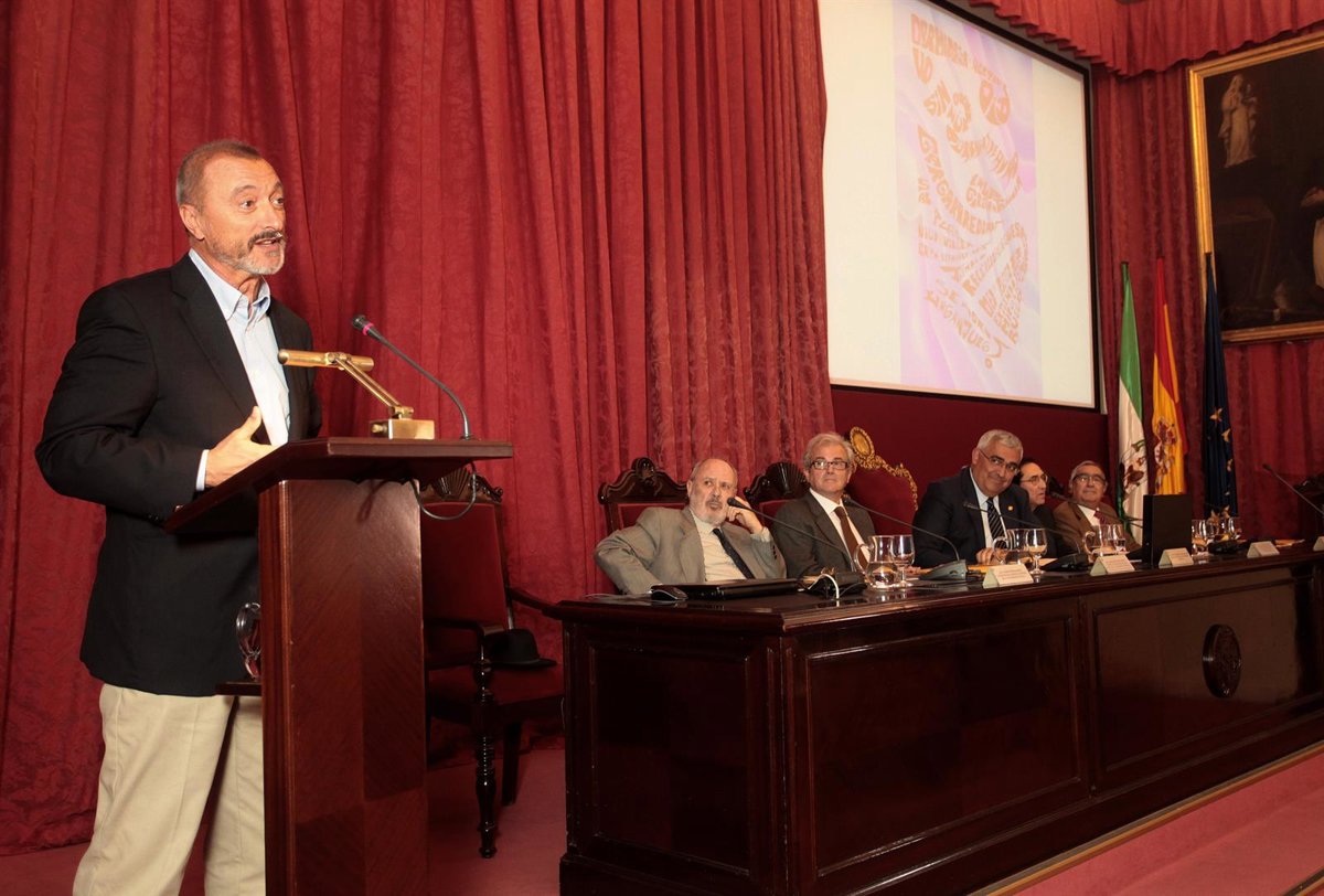 El escritor y periodista Arturo Pérez Reverte, acompañado entre los asistentes por los actores Alberto López y Alfonso Rodríguez, recordó desde el atril los años de amistad y compañerismo en los que Rafael de Cózar y él recorrieron teatros y escenarios disertando sobre literatura y las obras de autor de Alatriste.