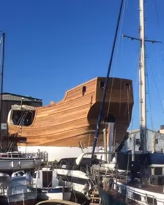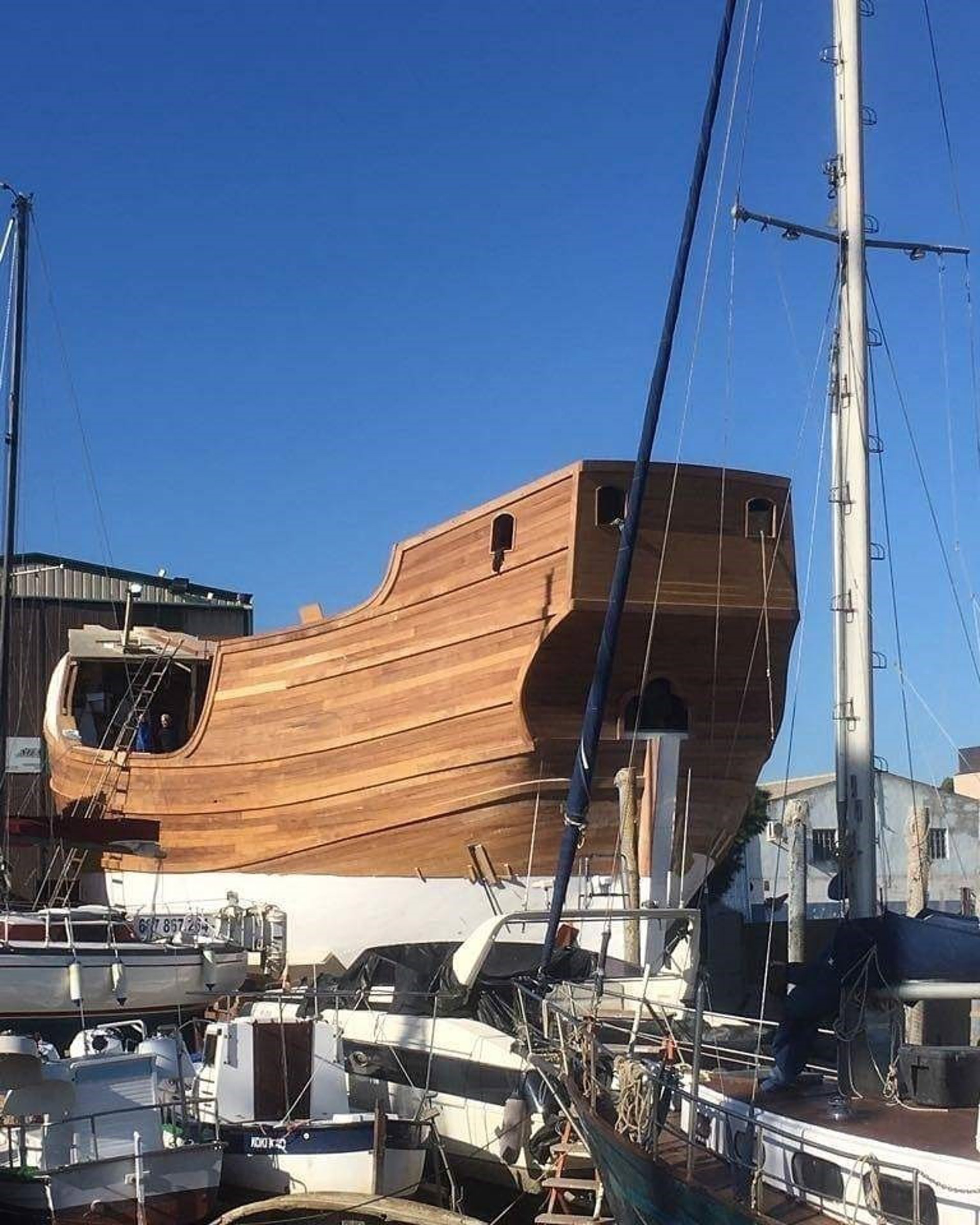 Paralelamente al revestimiento se están ejecutando las instalaciones del interior de la nave. Los mástiles, velas y aparejos ya se encuentran en las instalaciones del varadero de Punta Umbría, de manera que se procederá a los trabajos de arboladura en las próximas semanas.