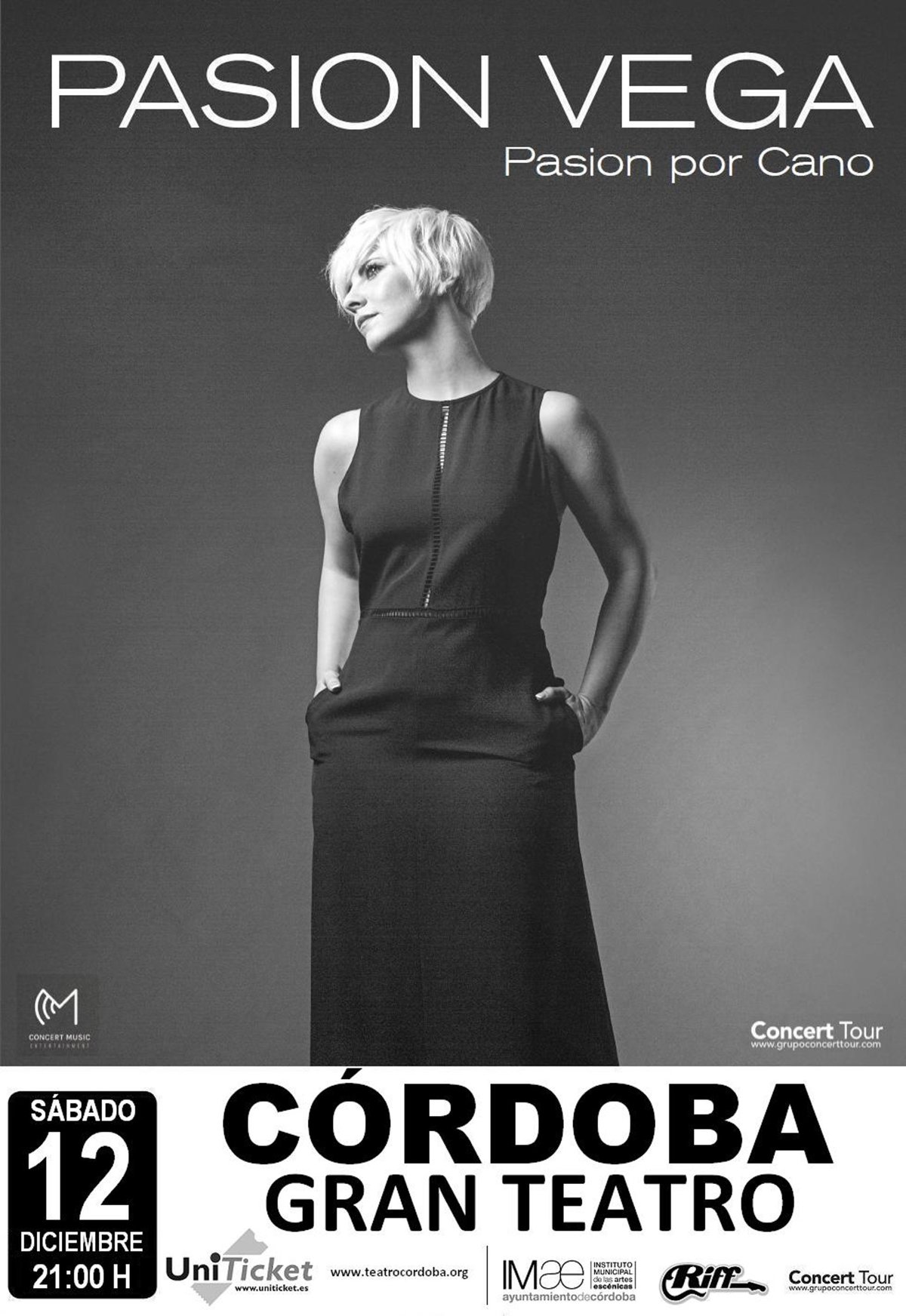 El 12 de diciembre la cantante Pasión Vega actuará en El Gran Teatro de Córdoba, donde ofrecerá el concierto 'Pasión por Cano', para el que, desde ahora, las entradas están ya a la venta en los puntos de venta habituales, es decir, en 'riffmusic.es', Uniticket y las propias taquillas del Gran Teatro.
