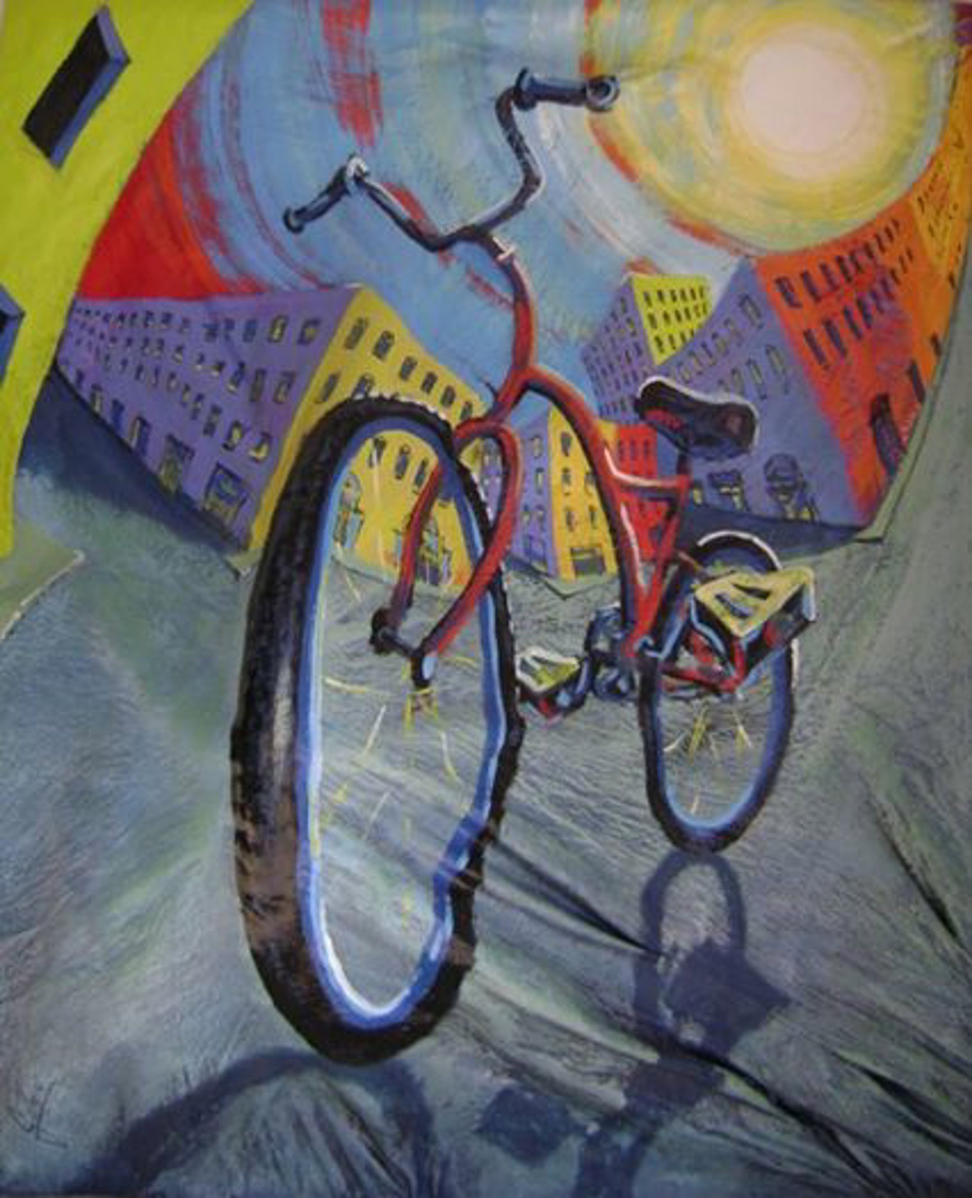 La muestra se compone de 27 acrílicos sobre tabla que tratan sobre la deformación curva de la realidad