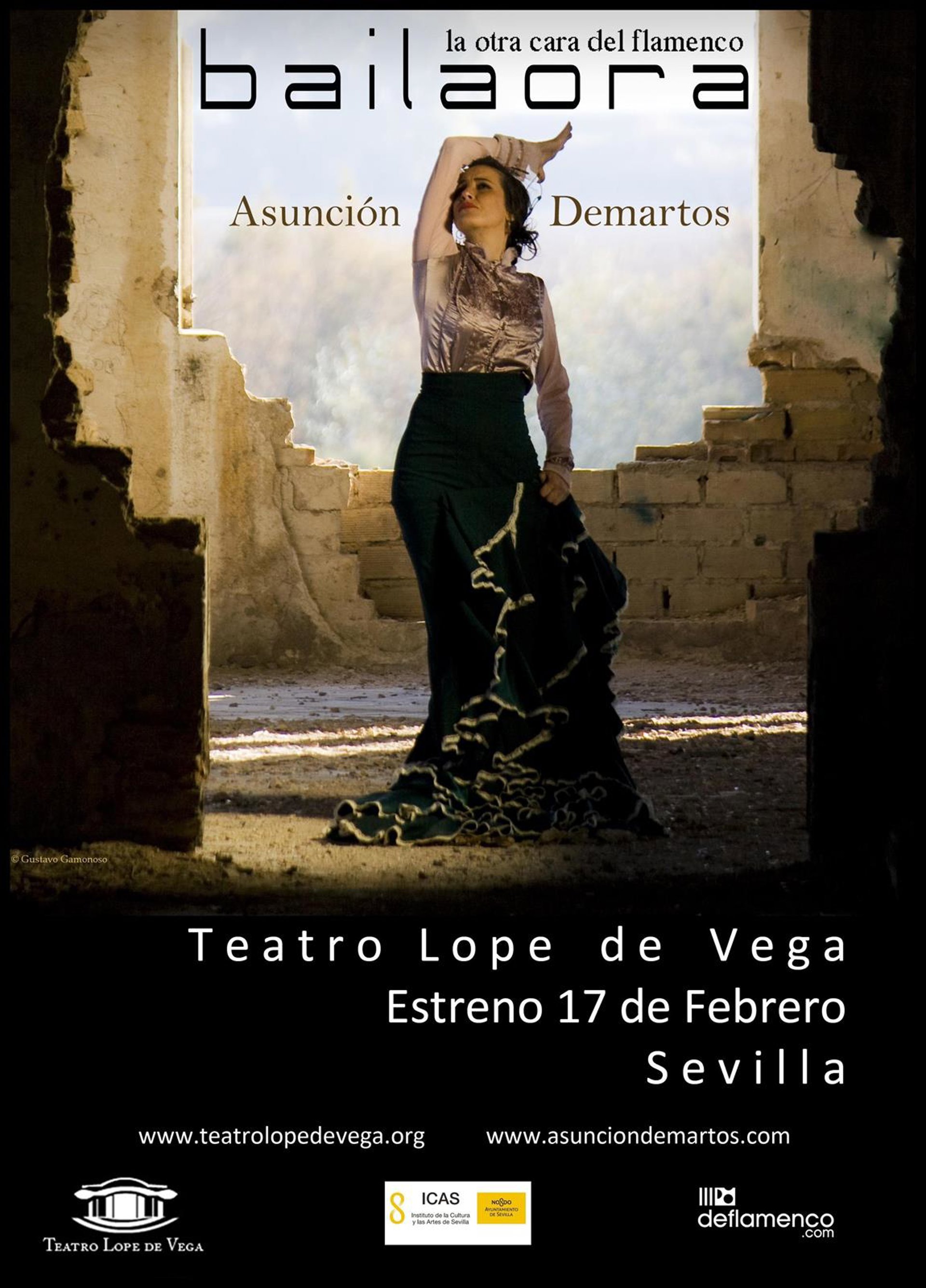Asunción Demartos presente este martes 17 de febrero en el Teatro Lope de Vega su espectáculo 'Bailaora', un espectáculo flamenco que muestra la intensidad de una profesión que se convierte en una forma de vida. Una visión novedosa y distinta del flamenco, la de sus intérpretes y sus vivencias personales antes de subir al escenario.