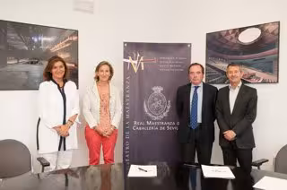Este viernes ha tenido lugar el acto de la firma del convenio de patrocinio entre la Real Maestranza de Caballería de Sevilla y el Teatro de la Maestranza correspondiente a la temporada 2013-2014, con lo que se cumplen veinte años de apoyo al recinto teatral.