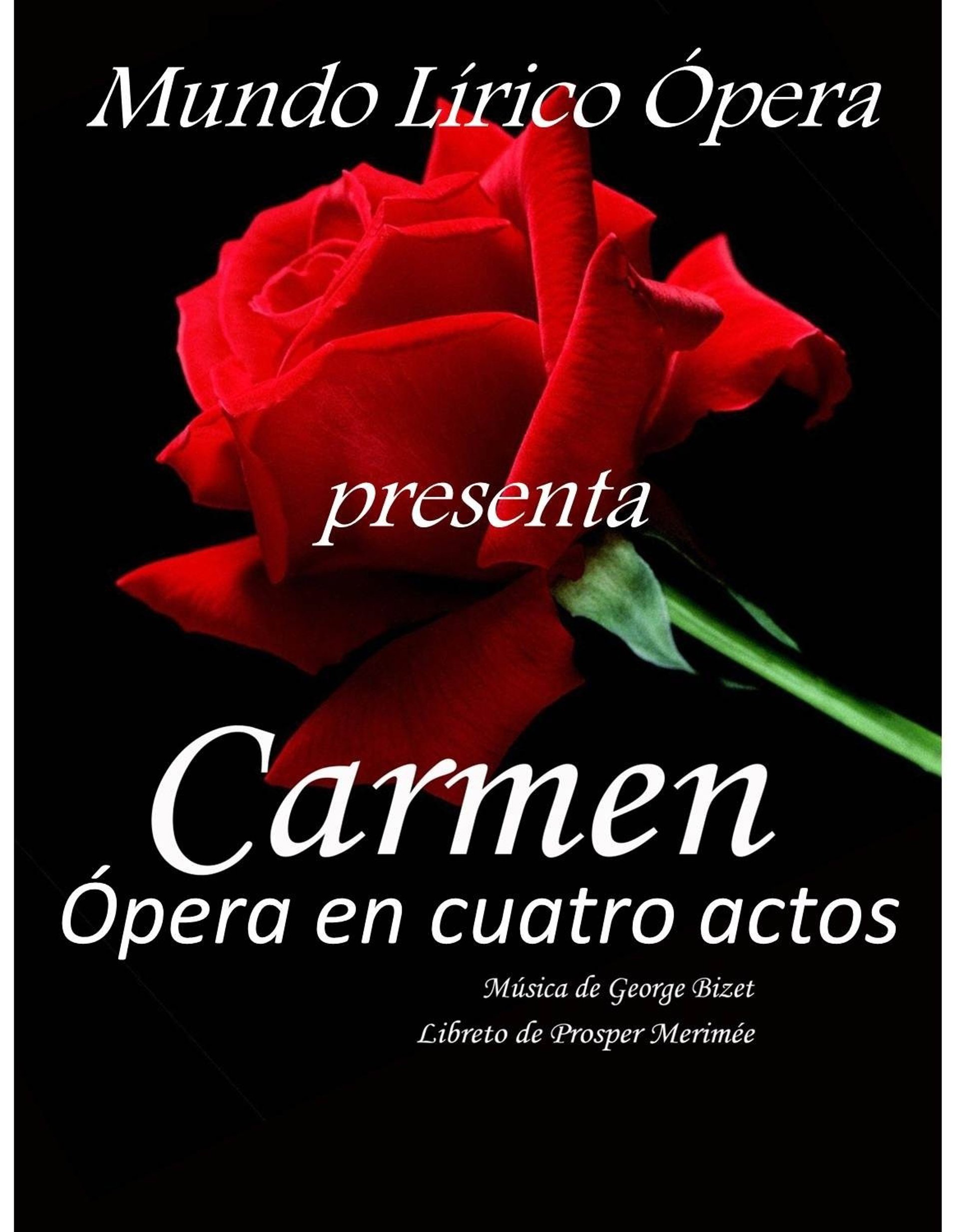 Esta ópera de cuatro actos con música de Georges Bizet y libreto de Halévy y Meilhac, en su versión musical escenificada dirigida por el Maestro Director de Orquesta César Belda, estará representada por cinco reconocidos cantantes solistas profesionales del panorama nacional, junto a la orquesta de cámara y coros de Mundo Lírico.