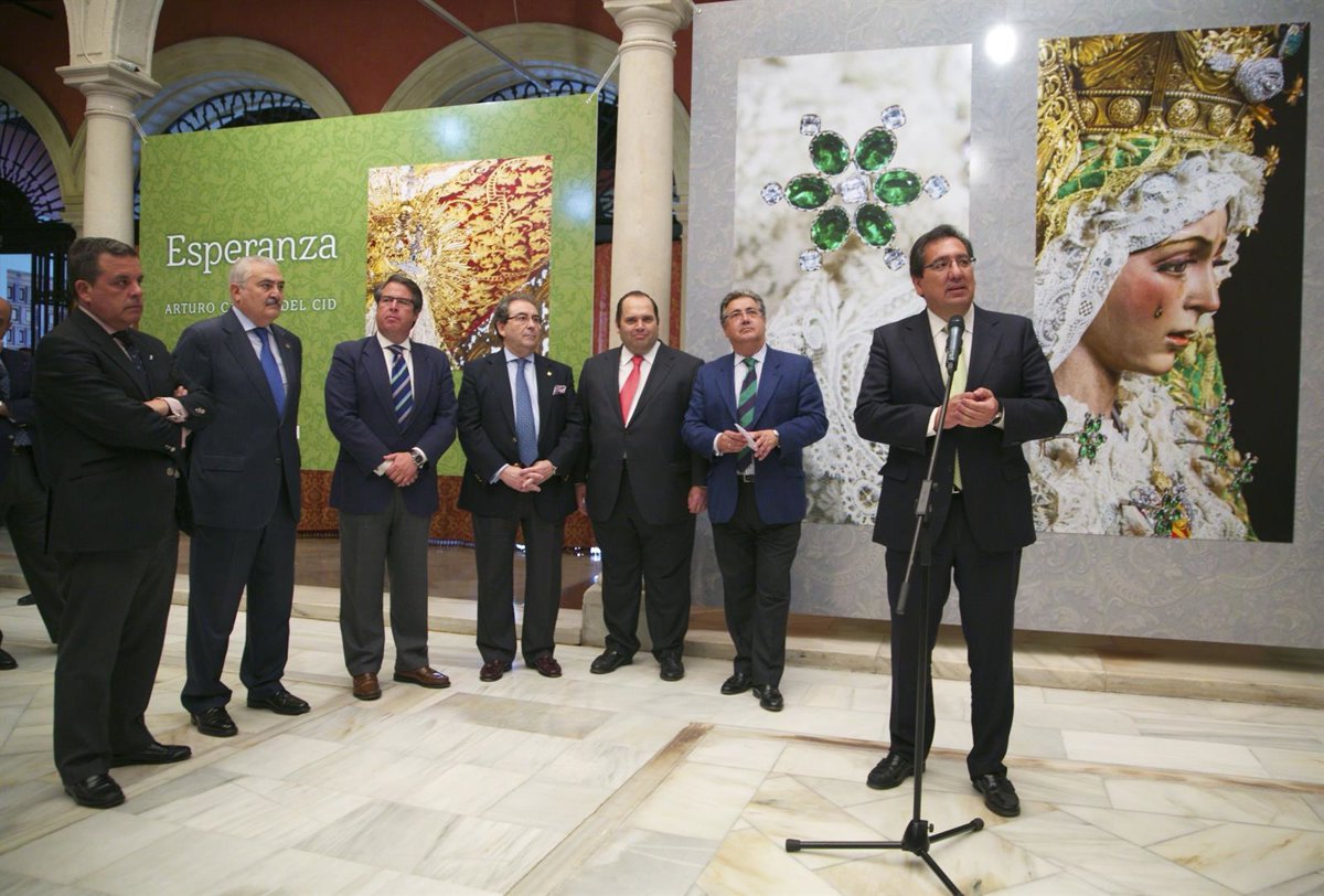 El presidente de la Fundación Cajasol, Antonio Pulido, ha inaugurado este viernes en su sede de Sevilla la muestra 'Esperanza', la primera exposición fotográfica en gran formato sobre la Virgen de la Macarena, obra del fotógrafo Arturo Candau del Cid.