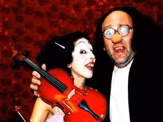 Dos personajes, extraños, entrañables se encuentran, creando un mundo de ilusiones imposibles que solo son pensables desde el subrealismo y la ingenuidad. El destrozo del violín, un concierto de voz de la enana, el mundo oculto del piano, la muñeca del ventrilocuo, etcétera. Los dos payasos se relacionan, se odian y se asesinan, para poder seguir viviendo en el matrimonio del amor.