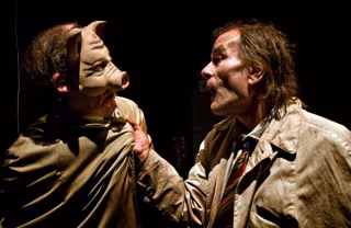 La lucha por el puesto, con el único horizonte de un horario rutinario y vacío, sin más esperanza que la de una muerte indolora, hace que las vidas del cerdo y el hombre se crucen, se confundan.