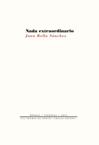 La obra ganadora de la decimosexta edición del Premio Internacional de Poesía 'Emilio Prados', 'Nada extraordinario' de Juan Bello Sánchez, ya ha sido editada y puesta a la venta por la editorial valenciana Pre-Textos.