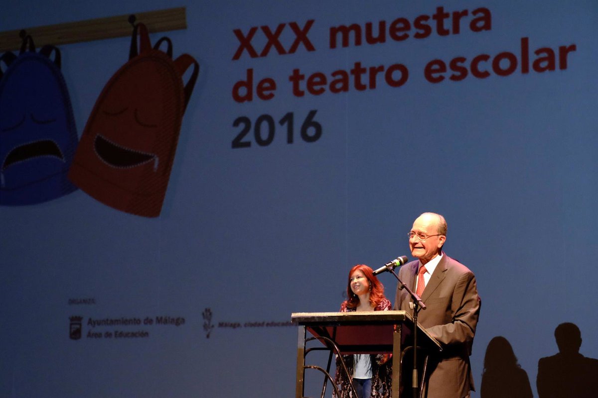 El Teatro Cervantes de Málaga ha acogido este martes el acto de clausura de la XXX Muestra de Teatro Escolar, organizada por el Área de Educación del Ayuntamiento. Una cita en la que durante todo el curso han participado 1.300 alumnos, entre actores y espectadores.