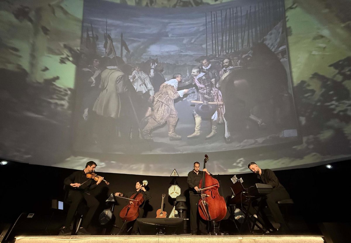 De esta forma, obras como 'Las Meninas' de Velázquez, 'El Caballero de la mano en el pecho' de El Greco o 'La Maja desnuda' de Goya, dialogan con versos de Lope de Vega, Cervantes, Machado o Lorca, y composiciones musicales actuales interpretadas en vivo, generando una experiencia que va más allá de un pase escénico convencional.