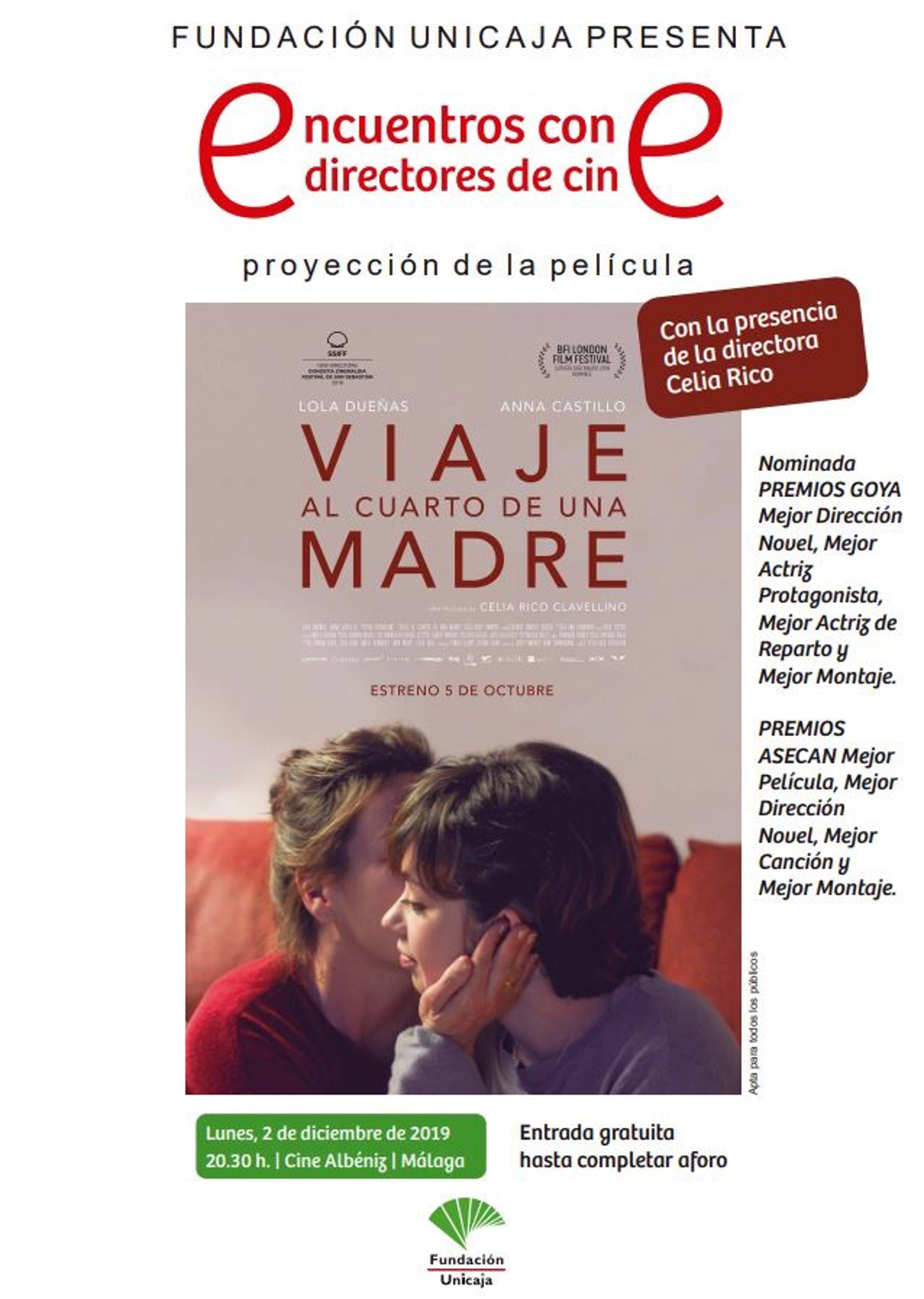 El ciclo Encuentros con Directores de Cine de la Fundación Unicaja celebra una nueva cita en Málaga, la última de este ciclo en el año 2019, con la cineasta Celia Rico y su película 'Viaje al cuarto de una madre' como protagonistas.