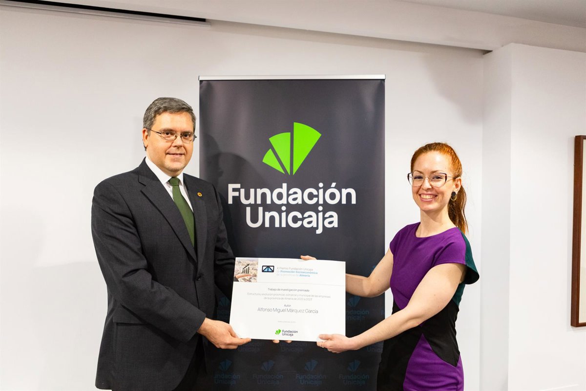 El X Premio Fundación Unicaja de Promoción Socioeconómica de Almería recayó en el docente Alfonso Miguel Márquez García por su trabajo 'Estructura y evolución provincial, comarcal y municipal de las empresas de la provincia de Almería de 2020 a 2023'.