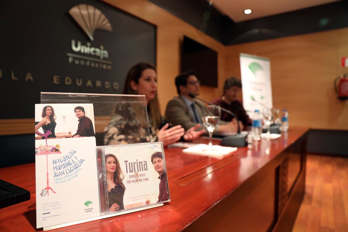 Fundación Unicaja ha presentado este viernes en Málaga a los intérpretes Macarena Martínez y Juan Escalera y su trabajo 'Turina. Complete Music for violin and piano', un disco en el que ambos músicos evocan al compositor español bajo la tutela del sello Brilliant Classics y el patrocinio de la propia Fundación Unicaja.