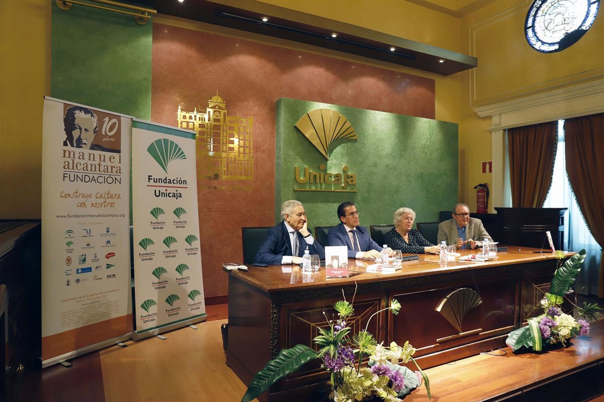 En el acto de presentación de la publicación han estado presentes el director general de la Fundación Unicaja, Sergio Corral; el presidente de la Fundación Manuel Alcántara, Antonio Pedraza; el profesor de la Universidad de Málaga y responsable de la edición, Francisco Ruiz Noguera, y Lola Alcántara, hija de Manuel Alcántara.
