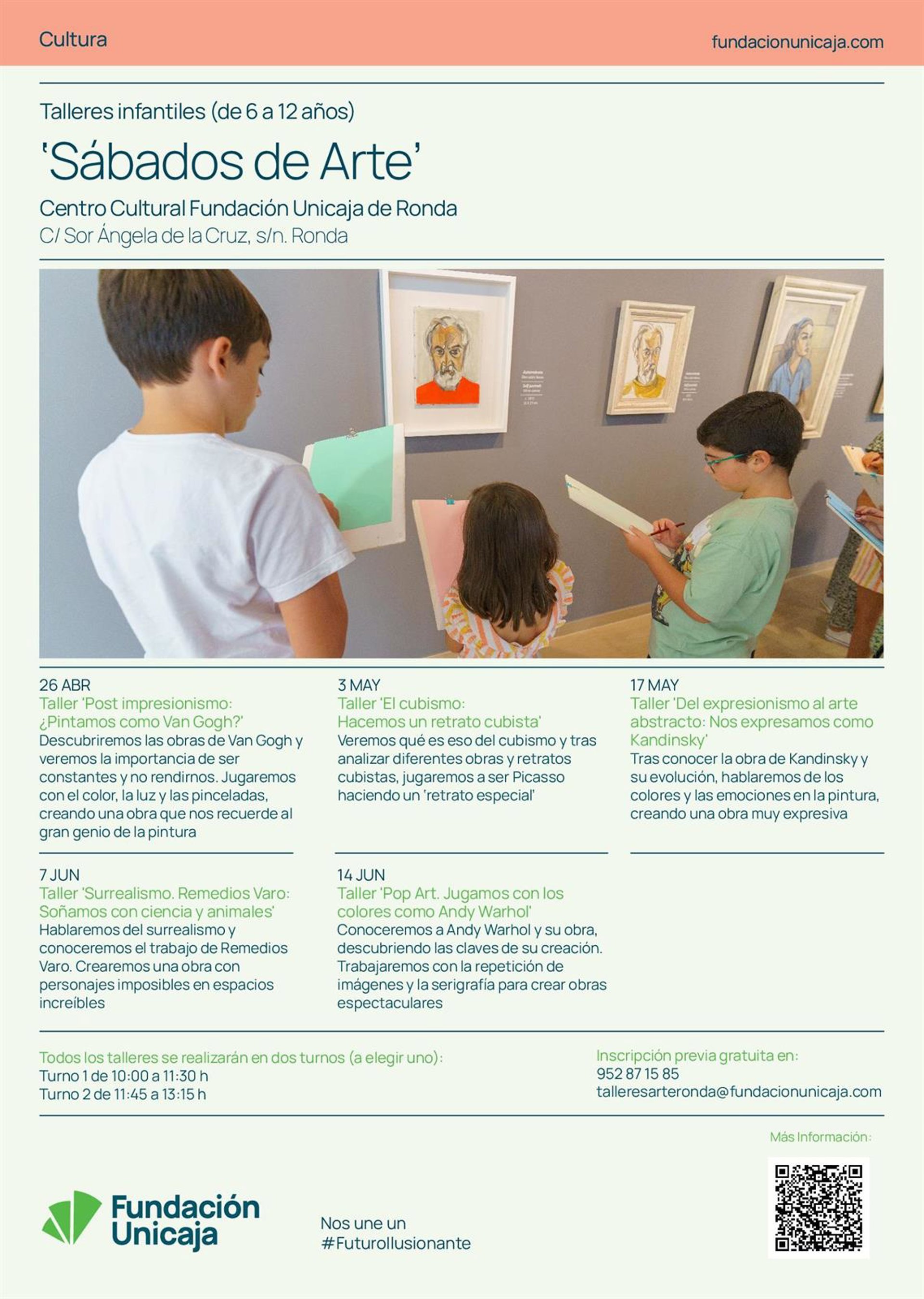 El ciclo, dirigido a niños y niñas con edades comprendidas entre los seis y 12 años, consta de un total de cinco talleres que se desarrollarán de abril a junio en horario de 10.00 a 11.30 horas y de 11:45 a 13:15 horas. La actividad es gratuita previa inscripción en el 952871585 o en el correo electrónico talleresarteronda@fundacionunicaja.com, han indicado en un comunicado.