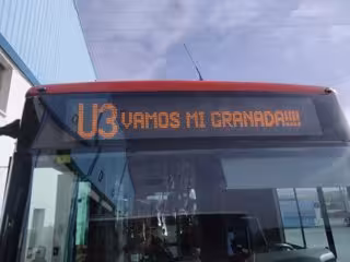 Los autobuses urbanos de la ciudad de Granada lucen desde este martes mensajes de apoyo al Granada CF. El área de Movilidad del Ayuntamiento de Granada, a través de Transportes Rober, ha querido sumarse a la campaña de respaldo al equipo local de cara al partido de fútbol de este jueves en el que el equipo se juega el pase a la final de la Copa del Rey.