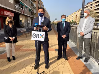 El alcalde de Granada, Luis Salvador; el primer teniente de alcalde y concejal delegado de Urbanismo, Luis González; la concejal de Mantenimiento y presidenta de la Junta Municipal de Distrito Ronda, Eva Martín; y el director de Planificación y Obras de Emasagra, Alejandro Muñoz, han presentado la intervención, que permitirá convertir la zona en un espacio más sostenible para los granadinos.