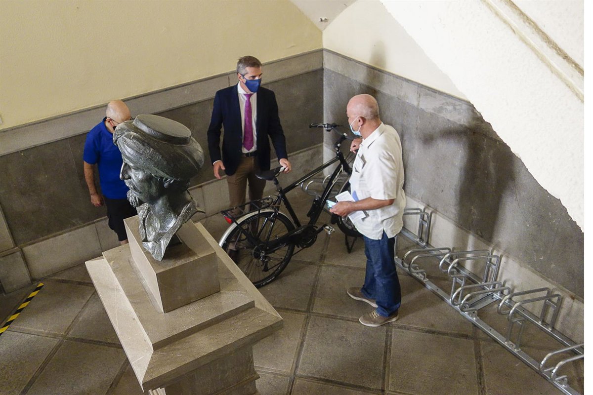 Así lo ha anunciado este miércoles el concejal de Movilidad y Seguridad Ciudadana, César Díaz, en el transcurso de la presentación de un nuevo espacio con capacidad para doce bicicletas que se ha instalado en el patio del Ayuntamiento de Granada y que se enmarca, según ha dicho, dentro del proyecto municipal de dotar a todos los centros y equipamientos municipales de esta infraestructura.