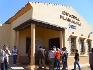 La oficina del Plan Aldea ubicada, junto al mercado de abastos, en la calle Venida de la Virgen de Almonte (Huelva), ha abierto sus puertas esta semana para que aquellos que deseen solicitar pases para la Romería de El Rocío de residentes, no residentes y hermandades, pases de 40 minutos, de carácter temporal para suministros y servicios, y pases de prensa, lo puedan hacer.