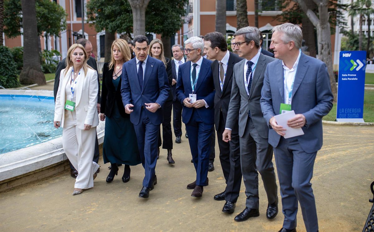 El presidente de la Junta de Andalucía, Juanma Moreno, ha inaugurado el acto acompañado de representantes institucionales como la secretaria de Estado de Energía del Ministerio para la Transición Ecológica y el Reto Demográfico, Sara Aagesen; la alcaldesa de Huelva, Pilar Miranda; y el presidente de la Diputación Provincial de Huelva, David Toscano.
