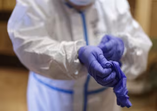 Personal sanitario de la Residencia de Mayores Jesús del Buen Amor se coloca el material de protección. En Griñón, Madrid, (España), a 27 de abril de 2020. - Eduardo Parra - Europa Press