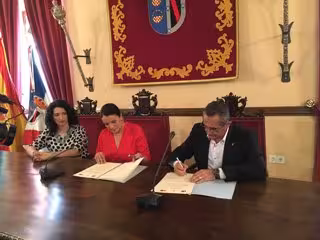 El presidente de la Comisión Ejecutiva de la Fundación Cante de las Minas y alcalde de La Unión (Murcia), Pedro López Milán, y la alcaldesa de Almonte (Huelva), María del Rocío Espinosa de la Torre, han firmado en el Consistorio almonteño el convenio de colaboración por el que se acuerda realizar las pruebas selectivas de los concursos de cante, toque y baile flamenco el 17 de junio en el Teatro Municipal 'Salvador Távora'.