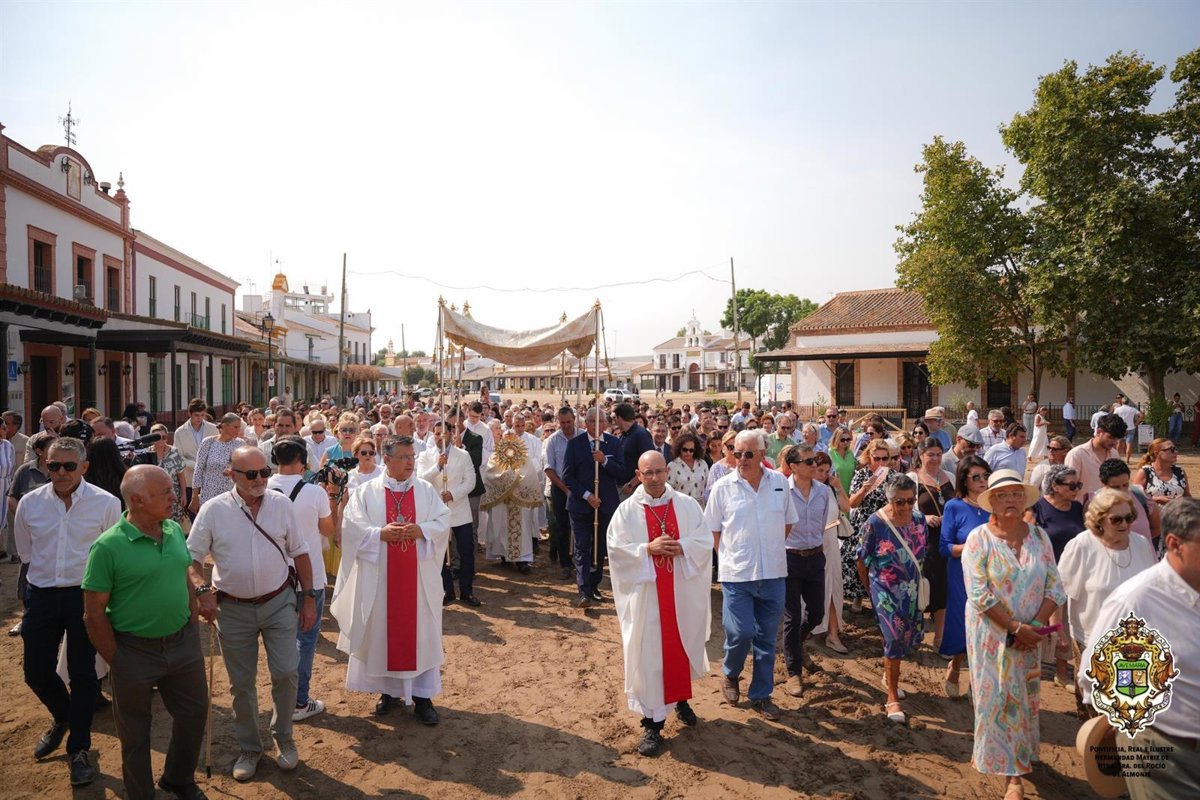 La homilía ha sido dirigida por el obispo de Huelva, Santiago Gómez Sierra, tras lo que ha tenido lugar la procesión eucarística por las calles de la aldea, con lo que ha dado fin la celebración del Rocío Chico 2025.