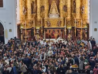 El santuario de Nuestra Señora del Rocío fue después el punto de encuentro para iniciar "un rato con Jesús Eucaristía, un momento de oración al que siguió la Misa presidida por el obispo de Huelva, Santiago Gómez", ha señalado el Obispado.