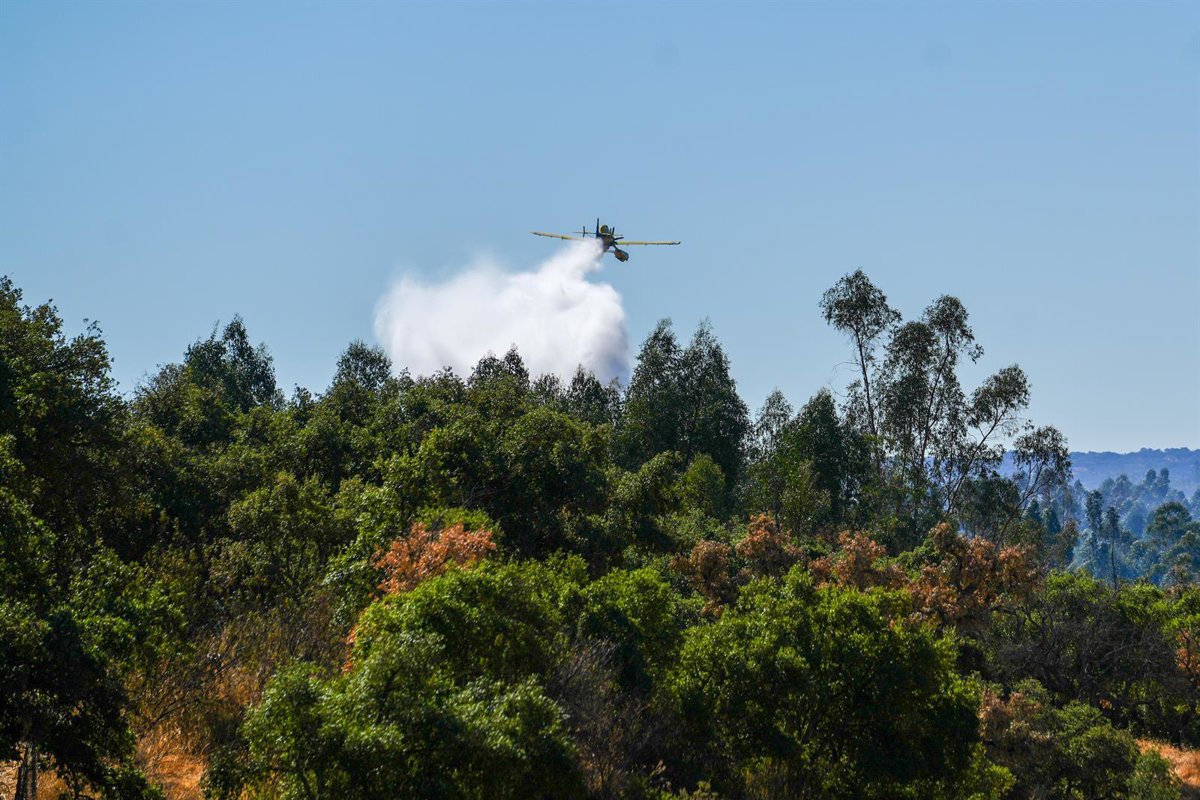 Un avión del Infoca trabaja en el incendio forestal generado por un camión en Higuera de la Sierra (Huelva). - FRANCISCO J.OLMO/EUROPA PRESS